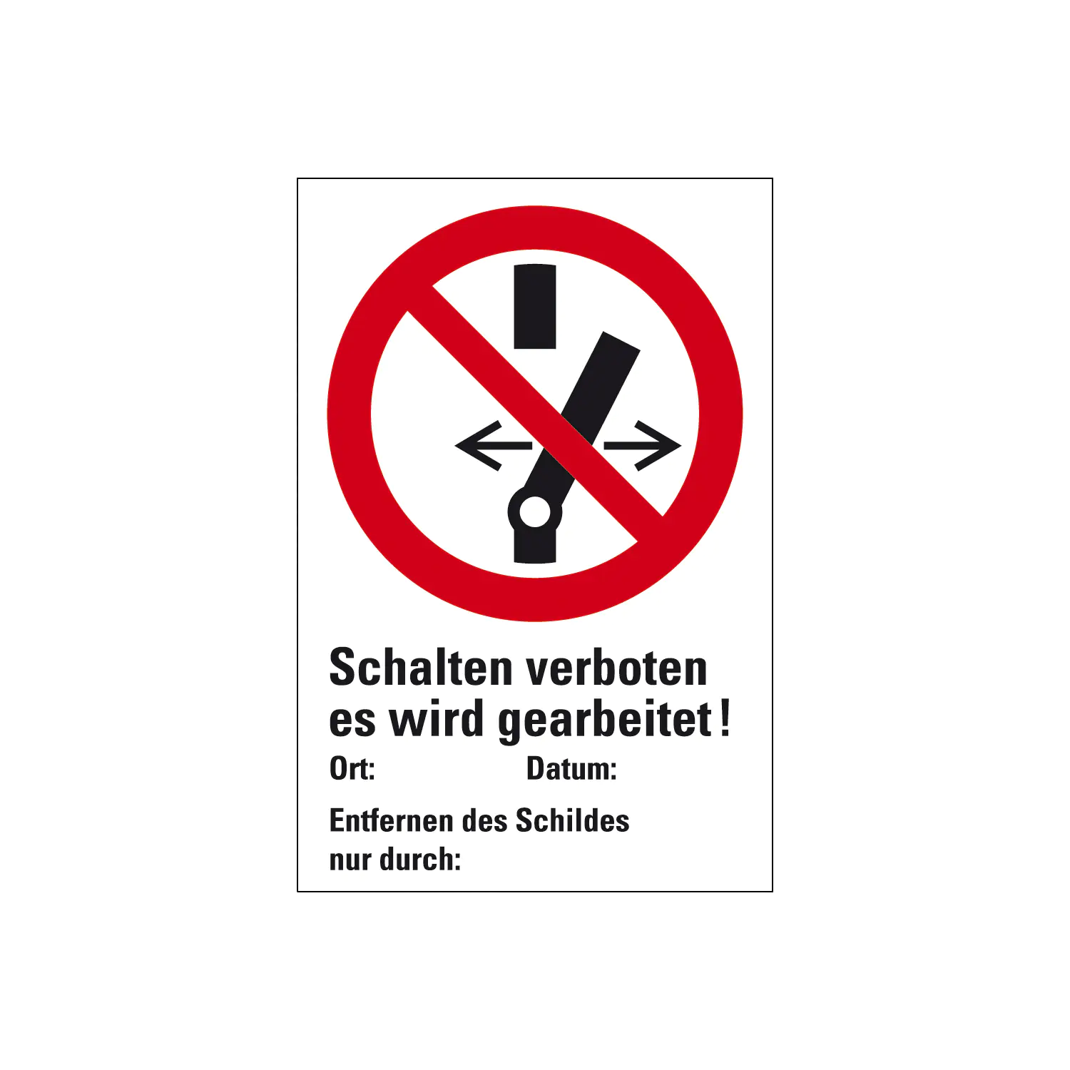 Schalten verboten! Es wird gearbeitet Ort: Datum: Entfernen des Schildes nur durch:
